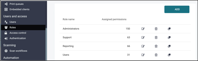 • The UI of Roles page is updated and now you can identify how many permissions are assigned for each role at a glance.