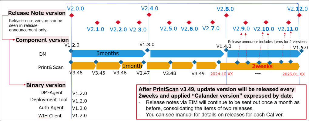 • Starting with this release, the versioning format of Print&Scan component will switch to a calendar versioning, and the release cadence will increase from approximately once per month to every two weeks. The purpose of this change is to deliver new features to the market more quickly than before. However, the frequency of release announcement will remain once per month, as before.